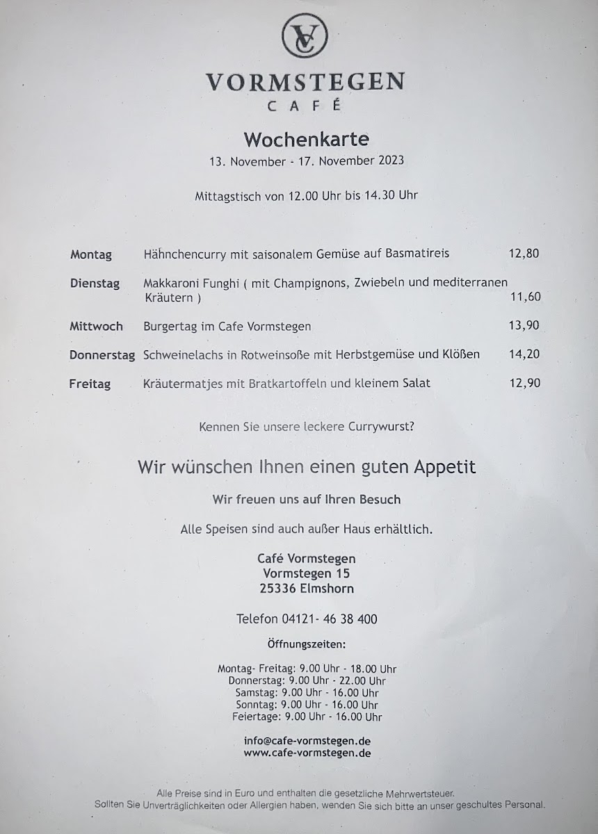 Café Vormstegen Menu